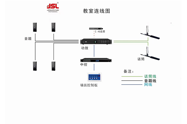 一般多媒体会议音频系统包括显示屏、投影仪、无线传输器、控制器、音视频等设备Cpu以及扬声器、功放、麦克风等周边视觉设备。其中,音视频。Cpu可根据实际应用环境选择反馈抑制器、平衡器等。